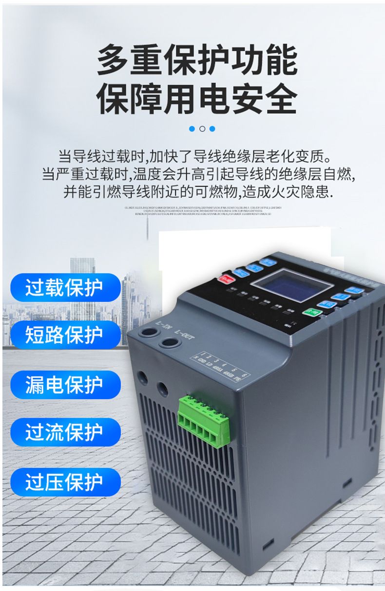 3.表内超温保护功能,保护器内部器件工作温度过高时,保护器限流保护。