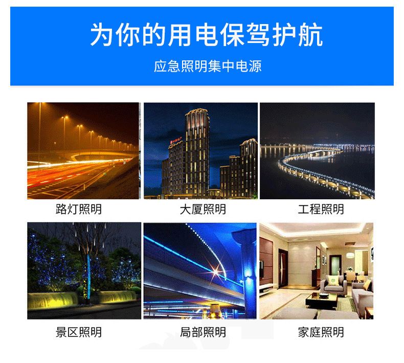 应急照明集中电源消防专用的照明电源,专为应急照明系统供电的。平时基本只有指示系统在工作,发生火警时根据火灾报警控制器的联动或者消防控制室的操作,切换到应急照明状态。此时所有(或对应防火分区) 应急照明装置启动,照明指示系统进入应急状态指示疏散逃生路线。与普通民用照明电源相比有更强的稳定性、及时性,需要满足消防法规以及对应的强制性国家标准。