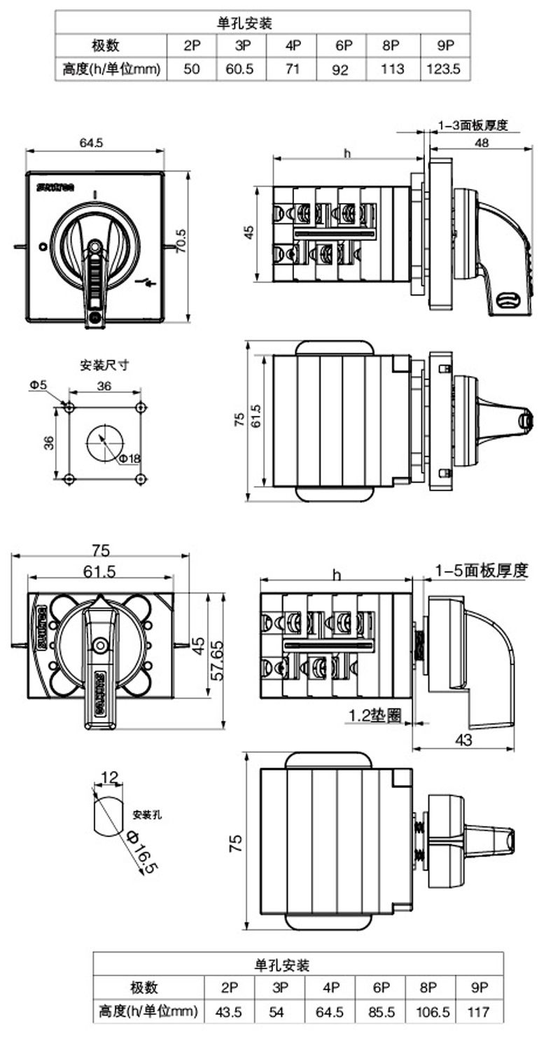 面板安装孔位置、外置安装IP66