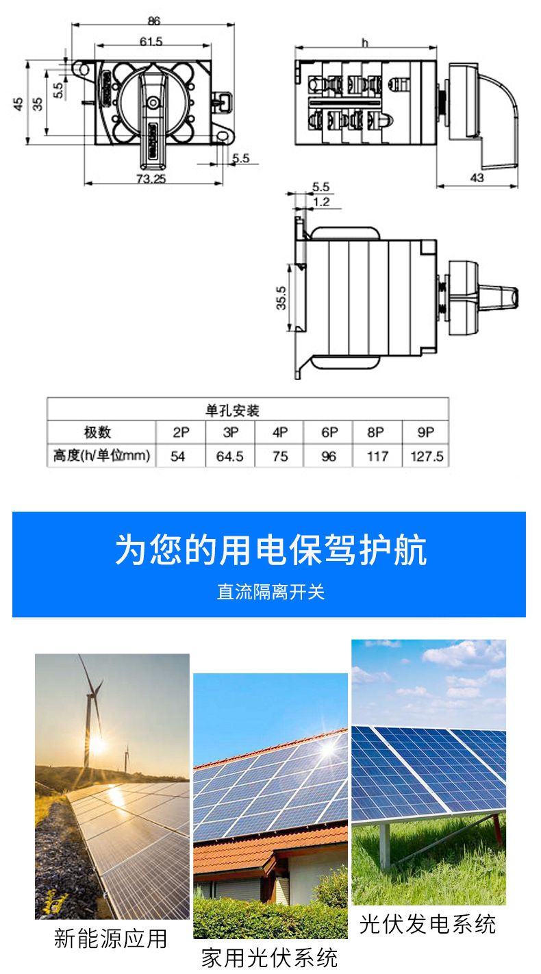 额定电压:2P、3P、 4P、6P、8P、9P Ue=DC1500V、Ue=AC690V;