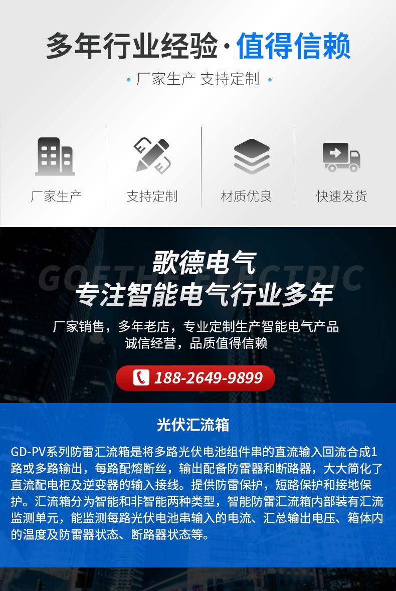 广州歌德电气有限公司位于羊城广州黄埔区,公司致力于智能高低压电气元件,消防火灾监控系统、智能照明控制系统、智能电力仪表及电力管理系统、智能电网元件的营销与服务,是智能电气行业企业之一。 在全体员工的共同努力和广大客户的鼎力支持下,公司获得了长足的发展,市场份额不断提升,并成为多家国内知名企业和国外品牌的长期合作伙伴。产品广泛应用于新能源(太阳能、风力、水力)发电、冶金、石化、港口、船舶、轨道交通、商业地产等领域,公司产品线丰富齐全,大大方便了甲方、设计院、电力总包、国营成套盘厂的选型。